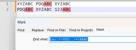 What you need to do is come up with a way of saying “match any text that is not XYZ, then reset the match, then really match ABC”. Unfortunately, with complicated “not XYZ”, I personally don’t know how to express that syntax in all situations. Here’s an example with the literal XYZ and ABC: